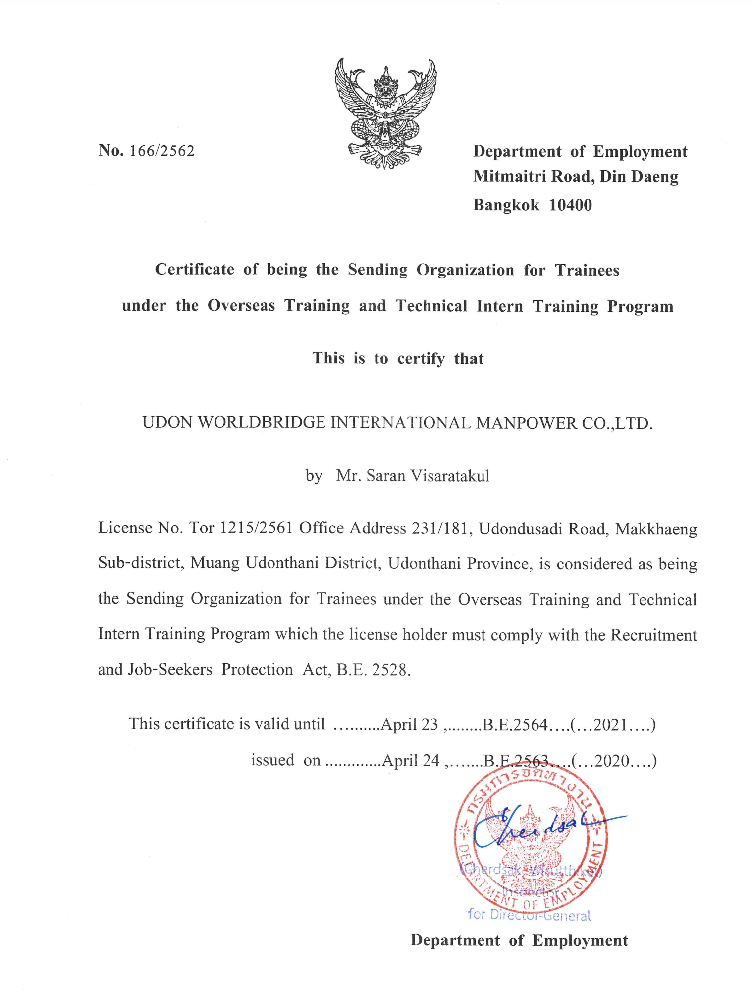 this is certify that this recruitment agency